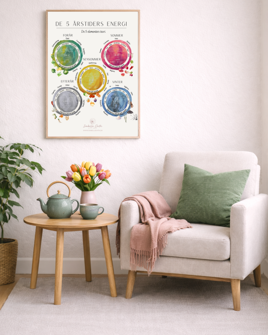 Plakaten er skabt som et visuelt redskab, der hjælper dig til overblik, så det bliver lettere at arbejde bevidst med energierne i årstiderne – følelsesmæssigt, mentalt og fysisk.